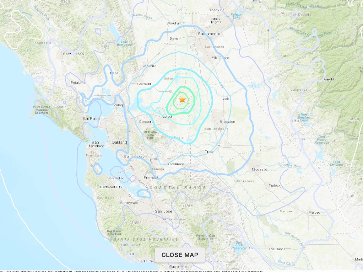 SAN FRANCISCO BAY AREA, CA — An earthquake with a preliminary magnitude reading of 4.1 was felt in parts of the Bay Area. It was centered in Isleton in Sacramento County, according to the United States Geological Survey Shake Map.