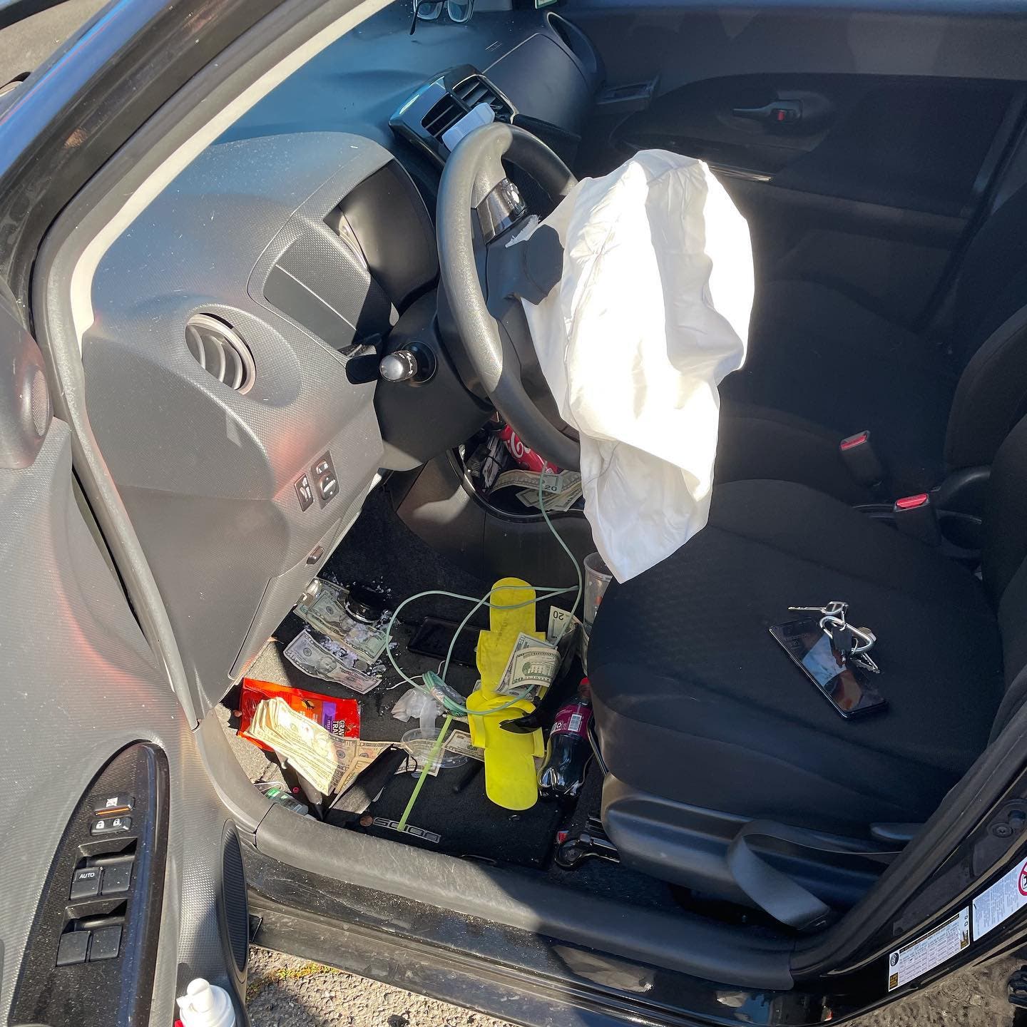Cash along with other evidence from the bank robbery was found inside the car, police said.