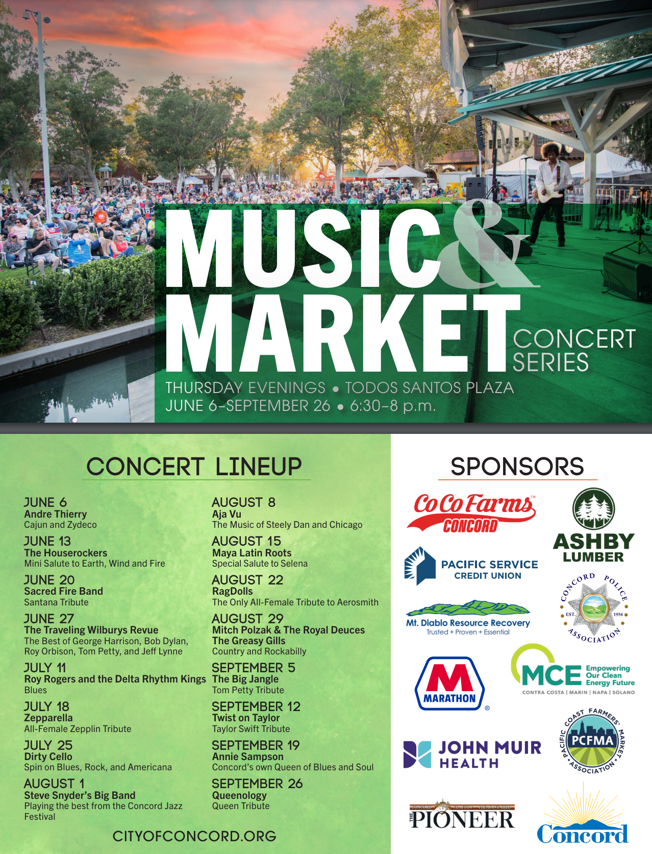 CONCORD, CA — Downtown Concord's popular Music & Market summer series is gearing up to return to Todos Santos Plaza, kicking off four months of music, food and fresh produce every Thursday.
