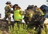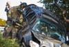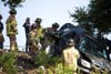 ConFire crews secured the SUV to a fire engine with chains just in case the car slipped off the steep hill where it landed around 9:40 a.m., between 242 and a the car dealership.