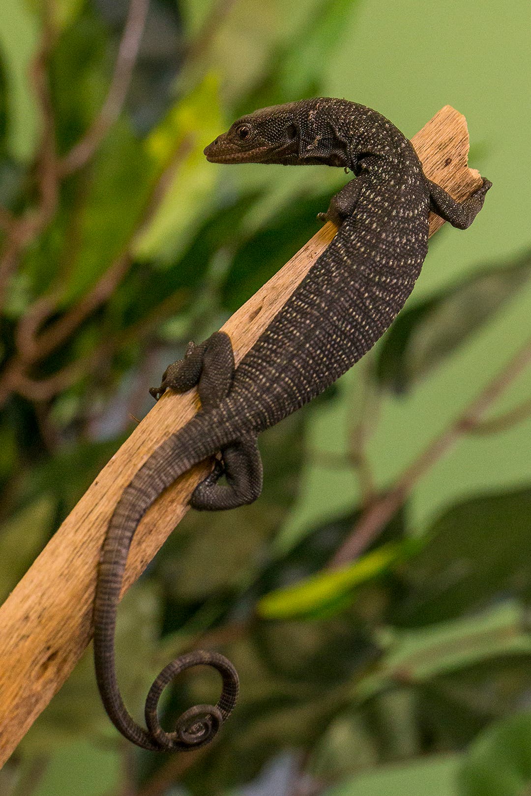According to the Zoo, black tree monitors live in the hot, humid forests and mangrove swamps of the Aru Islands. They are dependent on the forest canopy to survive, but most of the islands' regional forest has already been lost. Other threats to the species include the pet trade and non-native predators, such as foxes and cats. With the threats the black tree monitor faces in the wild, establishing insurance populations in accredited Zoos will help ensure the survival of the species.