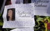 The cards read βin loving memory of Rebecca Zahauβ and offer an order of service for a memorial, without stating a date for when the service was or is scheduled.