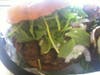 The Cafe Surfas Kobe Burger: An amazing Kobe beef patty with baby arugula for a little extra peppery kick, complete with onion, tomato with two cheeses and mayo possibilities. It is also served on a thick bun ready to soak up any dripping messes you make.
