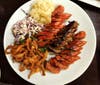 The sampler was flanked with three delicious sides of red cabbage slaw, crispy grilled onions, and sauerkraut, although there are many other selections available.