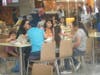 Other spots in the mall cater more to those with a sweet tooth, such as Creme de la Crepe, Baskin-Robbins, Millions of Milkshakes, Auntie Anne's Pretzel and Cinnabon. There are candy dispensers located on each floor of the mall, a Fuzziwig's Candy Factory, See's Candies, Red Ribbon Bake Shop and Mrs. Field's Cookies. These eateries and snack shops make up about 30 percent of the total retail space in the mall.