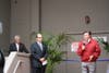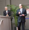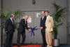 Show host Alex Trebek cut the ribbon on the new Jeopardy! Hall of Fame, after his remarks and remarks from show producer Harry Friedman.