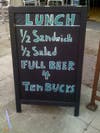 The BottleRock $10 special can be a perfect snack for two. With just enough food to split portions, the 1/2 sandwich and 1/2 salad is topped off with a nice big beer. Cheers.