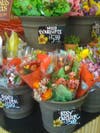 With decorated greeting cards and a selection of bright and beautiful flowers, a small and thoughtful gift is a cinch here. I went for the Rosy Outlook flowers for $3.95 and a card with a colorful collage of birds on the front for $.99.