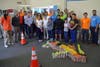 Photos: a practice session with a smaller size structure; and a kick-off meeting with the kids.