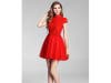 Another great alternative is a multicolored floral Mandarin dress with red flowers in the pattern. If the red flowers are printed on a black background, it will present the cheerful spirit of red and the slimming effect of black at the same time