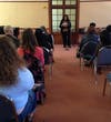 Cupertino Poet Laureate Jennifer Swanton Brown breathed new life into a classical poetic form, a crown of sonnets, which means a sequence of sonnets linked by repeating the final line of the preceding sonnet as the next one’s first line, at the San Jose Poetry Festival.