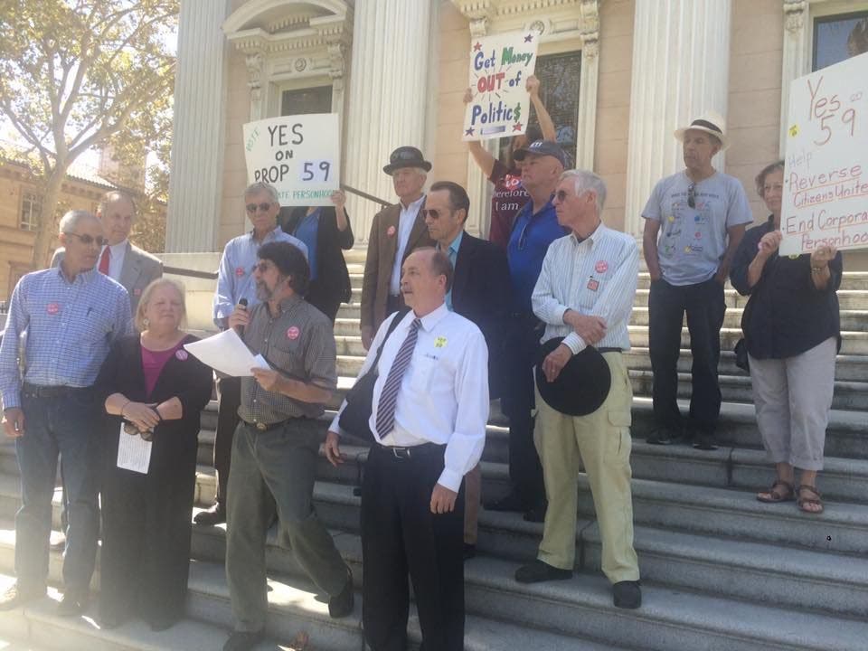 SANTA CLARA COUNTY, CA – A national effort supporters say would amend the U.S. Constitution to eliminate "corporate personhood" came to downtown San Jose Wednesday afternoon, where supporters gathered to push for the passage of a measure on the November ballot that could lend the state's support in making the change.