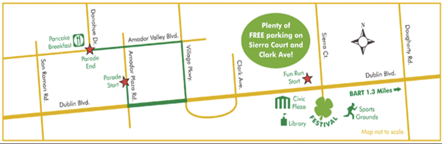 On Saturday, March 14, the Lions Club St. Patrick’s Day Parade will require closure of Amador Plaza Road between Dublin Boulevard and Amador Valley Boulevard from 7:00 a.m. – 11:00 a.m.