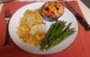 A slightly sweet glaze was drizzled over the tenderloin, which was topped with small pieces of ripe apricot. The baby asparagus served on the side was tender yet crisp and was accompanied with a dab of garlic herb butter.