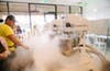"When the liquid nitrogen (-321° F) hits the base, it freezes so fast that ice crystals don't have a chance to develop, resulting in a decadently rich and luxuriously creamy ice cream with virtually no overrun," officials said.