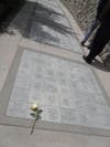 The memorial includes a path paved with dedications to veterans, lined by sculpted murals that depict a history of U.S. wars. The path leads to a circular area called the "healing circle," with a U.S. flag and granite stones engraved with quotations about sacrifice for one's country.