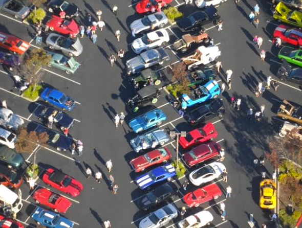 This shot of the colorful car collection featured at the Blackhawk car show earlier this month was captured in a digital-still taken by Danville resident Tony Zwetsloot, a retired Livermore Pleasanton firefighter who takes birds-eye photos from his powered parachute.