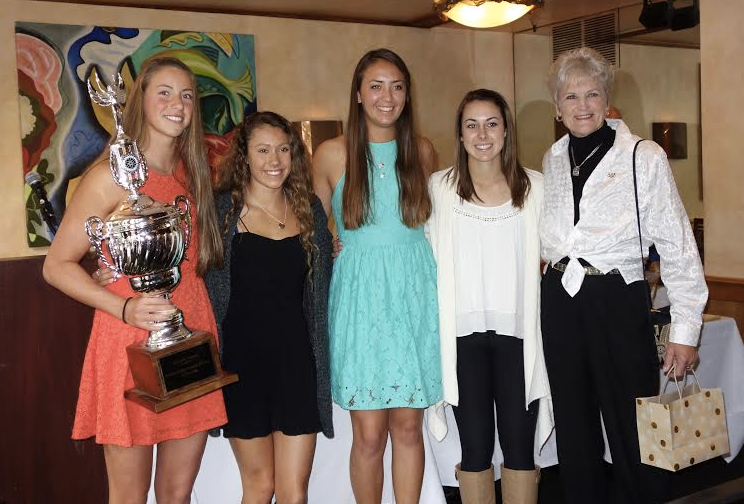 Caption: Outstanding Female Athlete of the Year (from left) Kat Klass is joined by runners up Kaya Philapil, California High School; Carolyn Lee, Dougherty Valley; Lindsay Rood, Monte Vista; and former Olympian and award ceremony speaker Marilyn King.