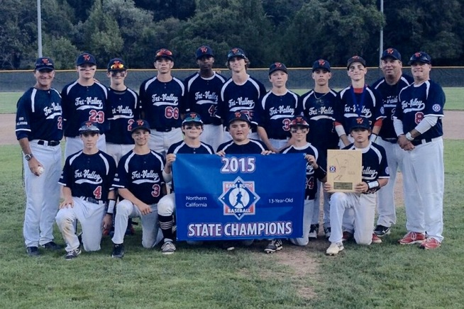 The Tri-Valley Babe Ruth 13 year old All-Stars won the Northern California State Babe Ruth tournament on Tuesday night, July 14th, at beautiful Anton Field in Ukiah, California. The team, consisting of 14 boys (7 from Pleasanton, 6 from Danville, and 1 from San Ramon) beat Palo Alto in the Championship game, 11-1.