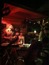 The blue and red lights from the openers had been turned off and a single, yellow spotlight was perched behind the drummer, flickering on and off and casting stark shadows around the silhouettes of the musicians. The bar was enveloped with its warm light and every uplifting and happy -- albeit loud -- sound from the band was met with a feeling of bliss.