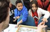 Photo 3: A news story written by UC Davis communicator Kathy Keatley Garvey about children of migratory workers touring the Bohart Museum of Entomology, UC Davis, won the gold or first-place award in news writing at the international ACE conference. Here two of the children react to seeing a Madagascar hissing cockroach held by Bohart associate Wade Spencer (Photo by Kathy Keatley Garvey).