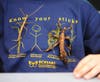 DAVIS, CA – Story and photos courtesy of Kathy Keatley Garvey. Images: UC Davis entomology student Wade Spencer (left) with budding entomologist Ty Elowe; Walking sticks (the real and the illustrated) line up on Ty's Bohart Museum of Entomology T-shirt.