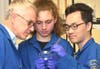 3. Looking over mosquito specimens are (from left) UC Davis chemical ecologist Walter Leal and two members of the research team: daughter Helena Leal, lead author; and UC Davis student Kaiming Tan. Not pictured is UC Davis student researcher Justin K. Hwang.