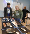 - Paleontologist Mark Deblois chats with Davis resident Joan Humphrey about the paleontology display at the 2017 UC Davis Biodiversity Museum Day.