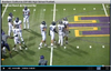 As tempers flare, Diamond Bar wide receiver Cordell Broadus (No. 21) can be seen in the lower left corner of the screen during the replay of the incident, taking a swing at the nearest Diamond Ranch player.