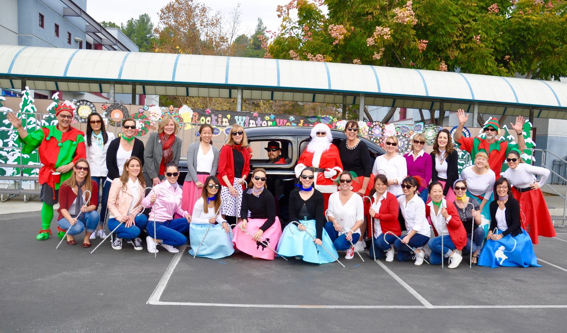 Staff members donned pony tails and 1950’s poodle skirts to perform “Rockin’ Around the Christmas Tree” concluding with a surprise visit by Santa and his elves.