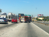 The big rigs and a bobtail truck collided in one of the No. 3 slow lane. Officers were trying to clean up the wreckage at 11:20 a.m., according to CHP reports.