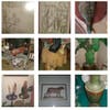 Oodles of Christmas & Thanksgiving party decor. Wall art, pieces from Peru, Inuit and other sculptures, Asian pieces, OUTDOOR SCULPTURES