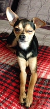 Our son, a male chihuahua mix, Emilio, is shy and wary of most people, but loving and gentle with us. He is small with long legs. He is black colored on his back and has brown and white with black on his face. He celebrated his 1st birthday on Oct. 20, 2013. We have kept him very close to us ever since he came into our family because we believe he was abused in his home of birth. He is not accustomed to being outside or on his own. We are very worried for him and his welfare. Since his arrival in our family, he has given comfort to my mother in law, 91 years old, and to me as I have been home since facing stage IV breast cancer. We need your help to bring our baby home. We are in tears over his disappearance. We were visiting relatives in Diamond Bar, CA on S. Palo Cedro Dr., near Armstrong Elementary School when he disappeared on Monday, Oct. 28, 2013.