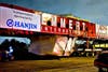 At about 10 p.m., the five semi-trucks ferrying the megalith shuddered to life. With a few honks that sent up a cheer from the dozens of onlookers on the other side of the street, the convoy inched forward, carefully conveying the 340-ton granite behemoth toward its ultimate destination, the Los Angeles County Museum of Art.