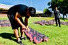 Walnut High senior Ethan Lee places final American flag on 9/11 display on Monday afternoon.