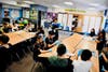 Suzanne Middle School teacher Ramona Talampas leads sixth grade Medical Detectives in first dissection on March 14.