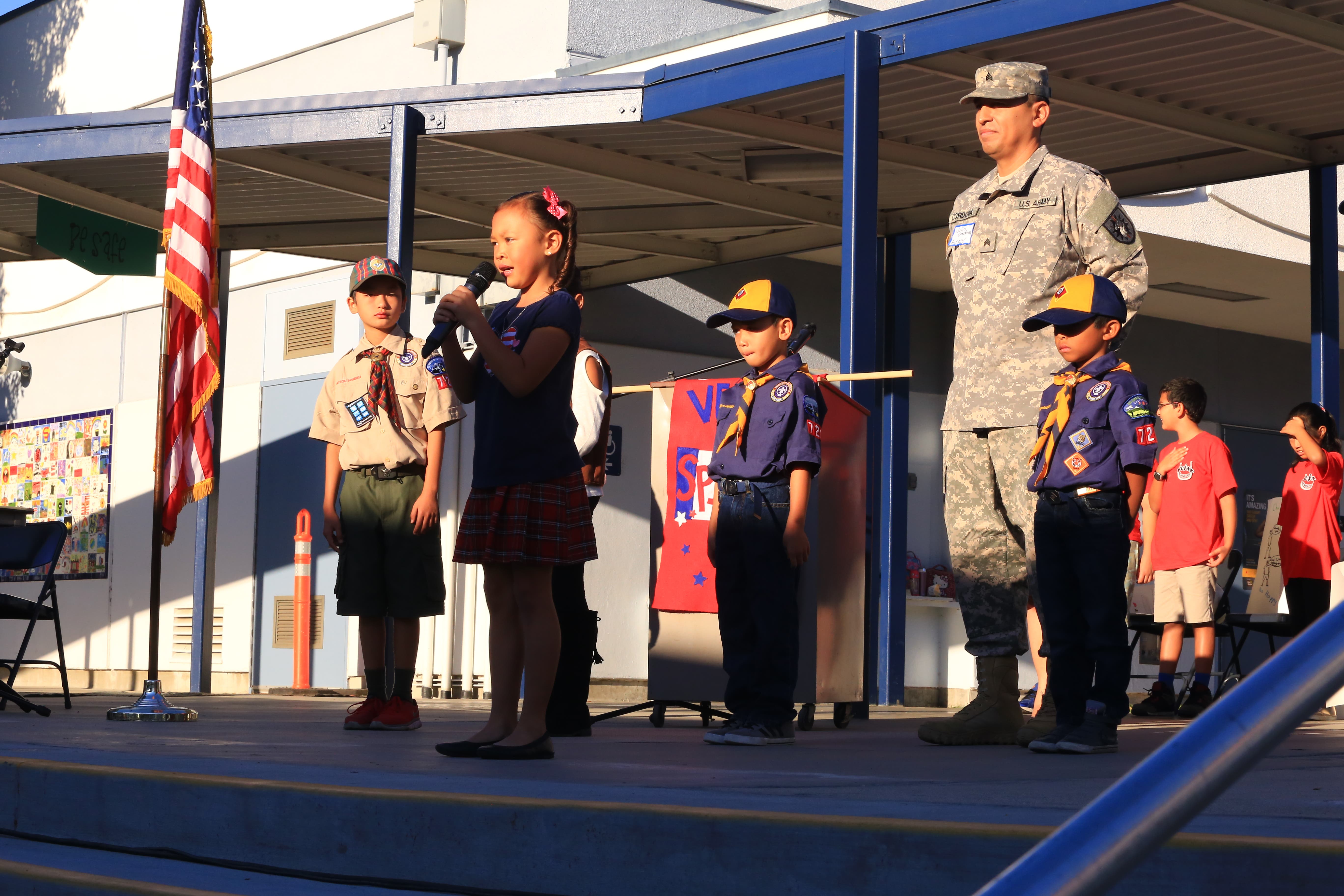 "The amphitheater stage was decorated with flags and a “We Love our Veterans” banner," Walnut Unified School District Spokesperson Kelli Gile said. "Upon their arrival, each guest was offered a warm welcome by a team of Student Ambassadors. An opening flag ceremony was led by Vejar cub scouts and girl scouts."