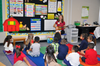 Teacher Lisa Peterson has a grouping of neon-colored chairs that students use during reading centers in her third grade classroom.