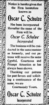 Upon his early death (his father was still living), Oscar C.’s family took over operation of the large enterprise, especially son Otto (then a physician living in Napa), who had oversight over the operation, and son Herbert, who directly managed the store. An ad which is shown in the photographs along with this column, marks the transition, when the Oscar C. Schulze Company became Oscar C. Schulze, Inc.