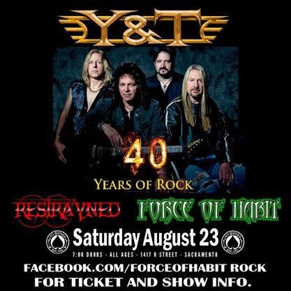Kids, we have got ourselves a Rock Show! It’s gonna be a helluva night on August 23rd at Ace of Spades in Sacramento. Dixon’s own Force of Habit opens the show, followed by Sacramento favorites Restrayned. NorCal rock legends Y&T are the headliners!