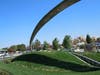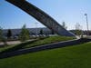 The most striking outcome of the federal funds is the 100-foot wide, 22-foot high stainless steel arch that acts as a boundary sign of the city and marker for the busy intersection of Dougherty Road and Dublin Boulevard. A twist on the classic gateway arch, the "Eternal Ribbon" was named by the City Council. Its hope was that the art would give "people the experience of passage, and when viewed from above, is the symbol for infinity."
