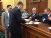 Next up: Rep-Elect Julia Brownley from Southern California. She nervously approached the box. Heeding the advice of Mr. Weidemeyer, Julia did a little dance right before putting her hand in the box. She drew #1. Unreal.