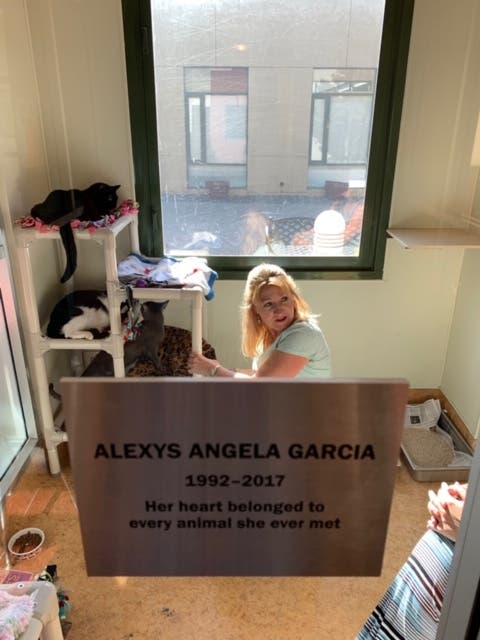 Garcia’s family and friends gathered at the shelter, where she used to volunteer, on June 18 to commemorate the room. A plaque on the door reads, "Alexys Angela Garcia 1992 – 2017. Her heart belonged to every animal she ever met."