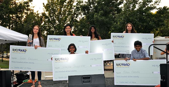 KKIQ Radio awarded cash prizes to the top three finishers in each category. The first place winners each received a trophy and a $300 check from KKIQ Radio. The second place winners, Kaitlynn Miguel (8th at Fallon Middle School) and Anne Xavier (a Dublin resident who will be an 11th grader at San Ramon Valley High School), each received $200; and the third place winners, Nimisha Shivaprasad (a 6th grader at Fallon Middle School) and Alicia Tran (a recent graduate of Dublin High), received $100 each.