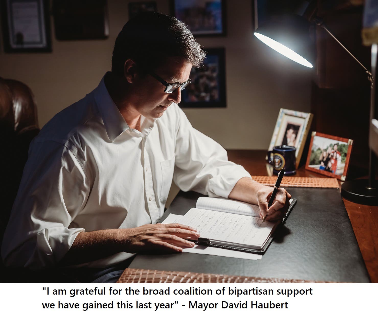 I’m thrilled that retiring Supervisor Scott Haggerty, who has dedicated the last 24 years of his life to serving our community as our supervisor, has endorsed me, saying, “My friend, Mayor David Haubert, is the right choice to lead our county. He has the experience and problem-solving skills that we need to move us into the future. District 1 will be in good hands with David on the board.”