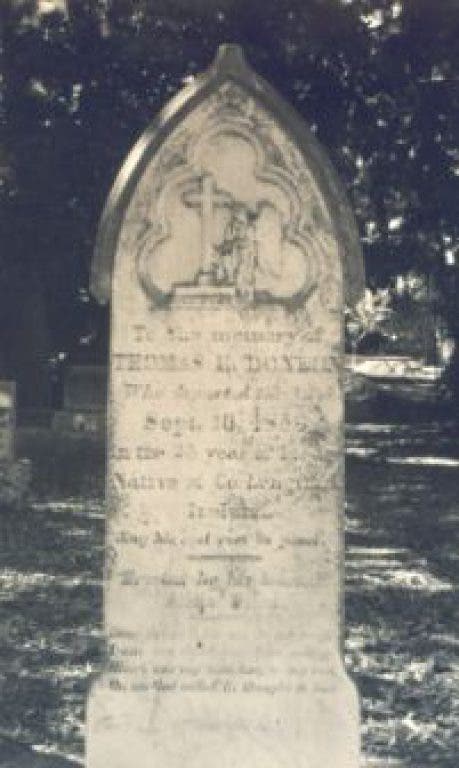 This photo shows his tombstone, which can be seen at the Dublin Pioneer Cemetary.