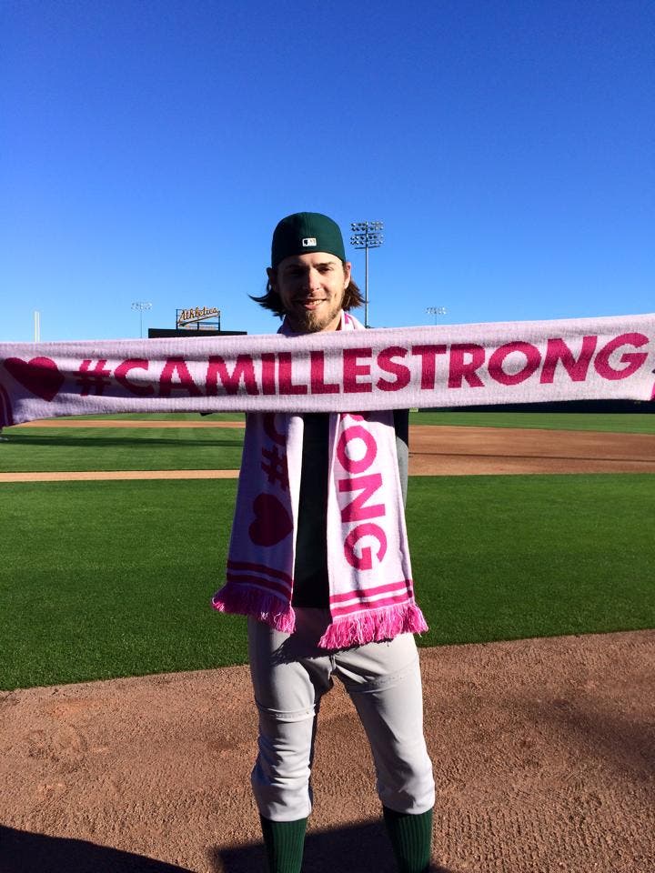 Josh Reddick was spotted wearing a #CamilleStrong scarf in support of Camille Chabot during spring training this week in Arizona