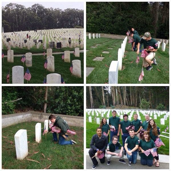 “Dublin Venture Crew from Troop 905 helped place flags on Saturday in preparation for today’s Memorial Day Ceremony at the National Cemetery in the Presidio. It was a great honor.”