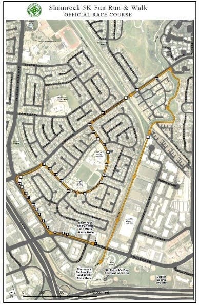 DUBLIN, CA — Several roads will be closed St. Patrick's Day weekend during the annual Shamrock 5K Fun Run and Walk on March 17. City officials say police will be posted along the course to help safely direct traffic. About 2,000 people are expected to participate.