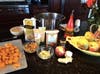 Sauté onion or shallot and apple with olive oil. Once onion is translucent, sprinkle in curry powder. Sauté one minute. Add roasted squash, pumpkin, carrots and celery. Add broth (start with one quart). Bring to boil then simmer for 20 minutes or until carrots are tender.
